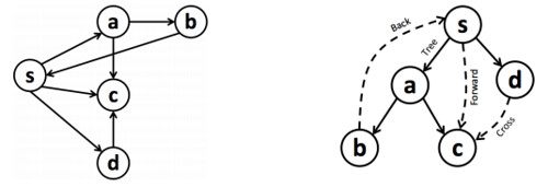 N.B. If you replace the stack above with a queue, you will get BFS, breadth-first search. And the breadth-first spanning tree formed by the parent edges contains shortest paths from the start vertex s to every other vertex in its connected component.