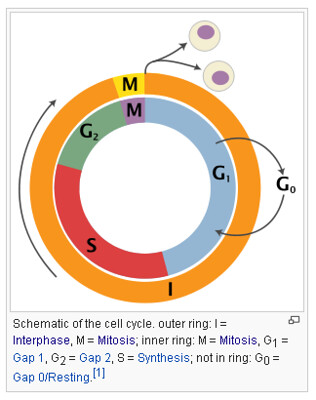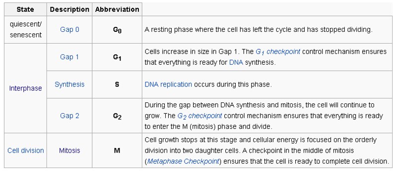 - cell cycle 的 4 stages 指 $ G_1 $ => S => $ G_2 $ => Mitosis