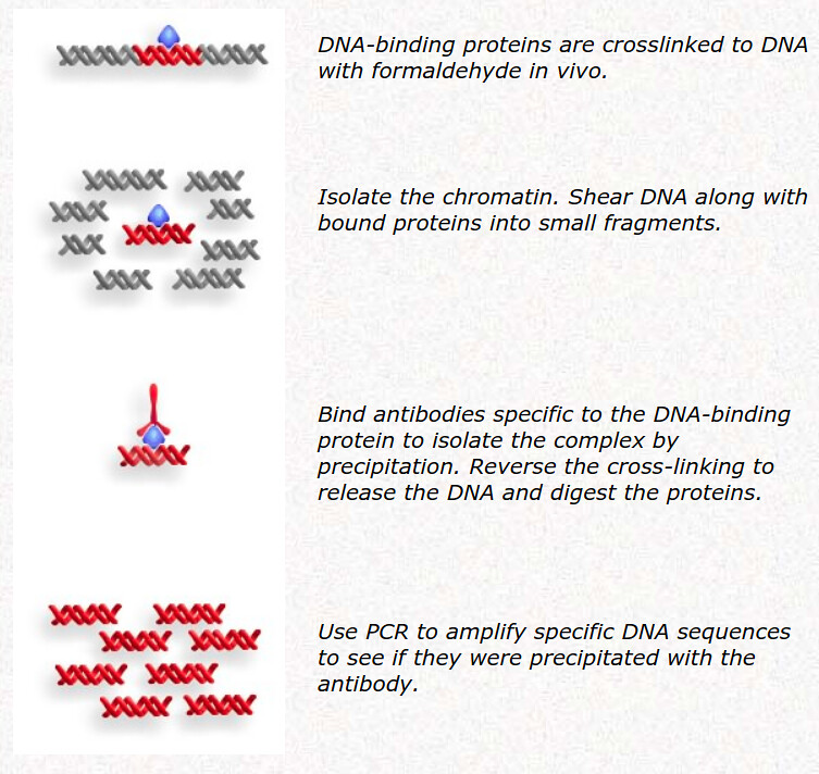- 它不是用来研究 chromatin 的。它的意图是用 immunoprecipitation 来捕捉 protein $\overset{\text{binding}}{\longleftrightarrow}$ DNA