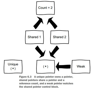 shared_ptrs can own the same underlying object - Just like reference counting, there is a shared count stored in