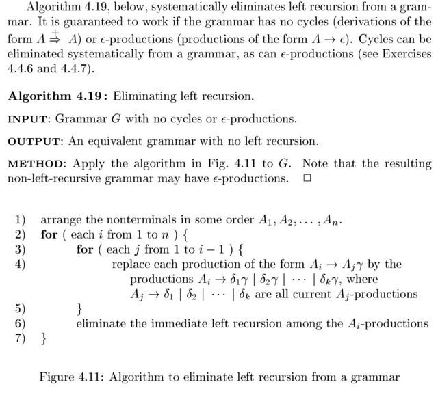 - Therefore whenever we see a production $A_j \to A_i \beta$ where $j > i$, it is possible that $A_i$ has an indirect left recursion.
