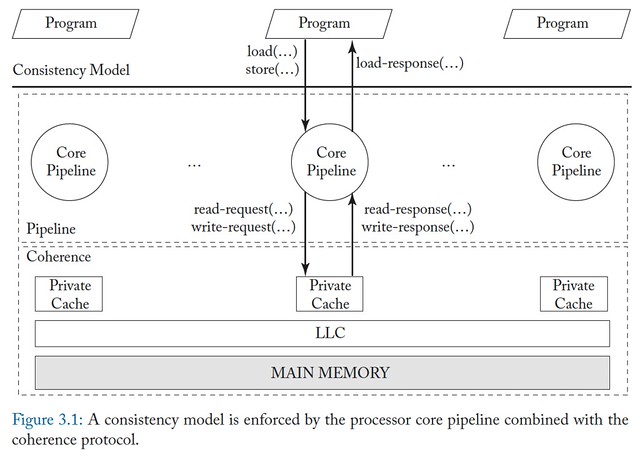 HW 有 caches,所以有 cache coherence 特性的研究。但后面我们能看到用 memory consistency 类似的方式来定义 cache coherence,理论上可以不依赖于 cache 结构。