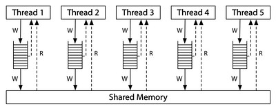 一般会提到 memory models. 它 truely 说的是 physical 的 CPU 的 memory architecture,不是纯研究用的理论模型。比如 x86-TSO (Total Store Order) 的 store buffer 结构: