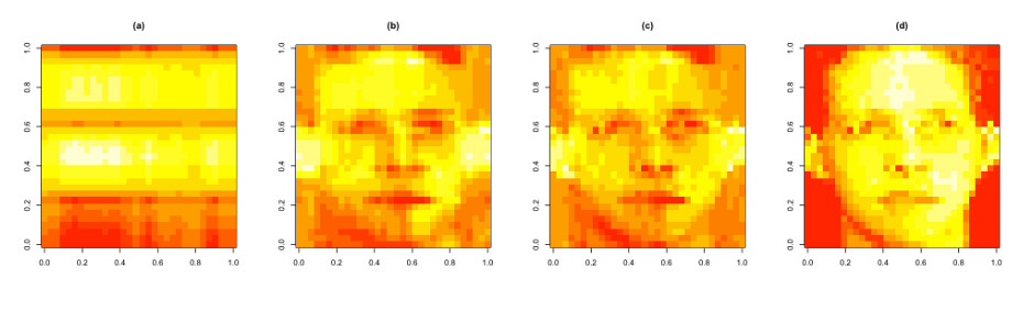 image(t(faceData)[, nrow(faceData):1], main = "(d)") ## Original data