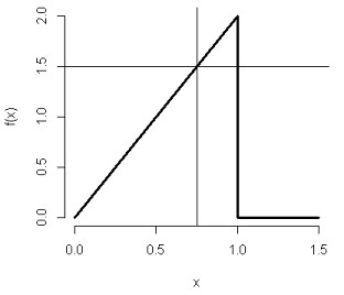 我们在 R 中执行 pbeta(0.75, 2, 1) 会得到 0.5625。根据 R Generating Random Numbers and Random Sampling 里总结的规律,p 开头的都是求 CDF,i.e. $F(x)$,所以这里 pbeta(0.75, 2, 1) 的意义就是:当 $\alpha = 2$ and $\beta = 1$ 时,求 $F(0.75)$。最终得到 $F(0.75) = 0.5625$。这和我们用 $f(x)$ 的面积来算的结果是一致的: