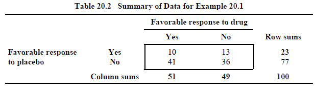 In Example 20.1, the frequencies recorded in Cells b and c, respectively, represent subjects who respond