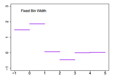 Similarly, we can find the smoothing operator for bin smoothing in $\mathbb{R}^1$. Here one divides a line segment $(a, b)$ into $m$ equally spaced bins, say $B_1, B_2, \dots, B_m$. Assume there are $k_j$ observations whose $x$-values lie in $B_j$. Then the bin estimate is: