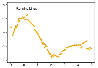 Loess extends the running line smooth by using weighted linear regression inside the variable-width bins. Loess is more computationally intensive, but is often satisfactorily smooth and flexible.