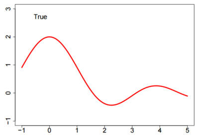 As a running example for the next several sections, assume we have data generated from the following function by adding $\mathcal{N}(0,.25)$ noise.