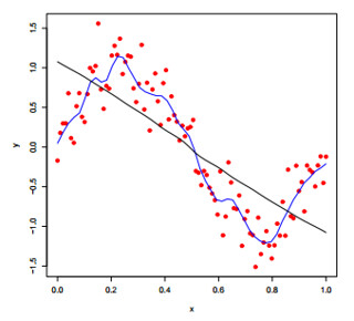 A key issue is the tension between how “wiggly” (扭曲的;与 “平滑” 对应) (or flexible) the smooth can be, and how many observations one has. You need a lot of data to fit local wiggles. This tradeoff is reflected in the degrees of freedom associated with the smooth.