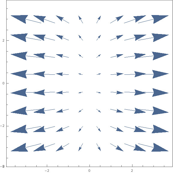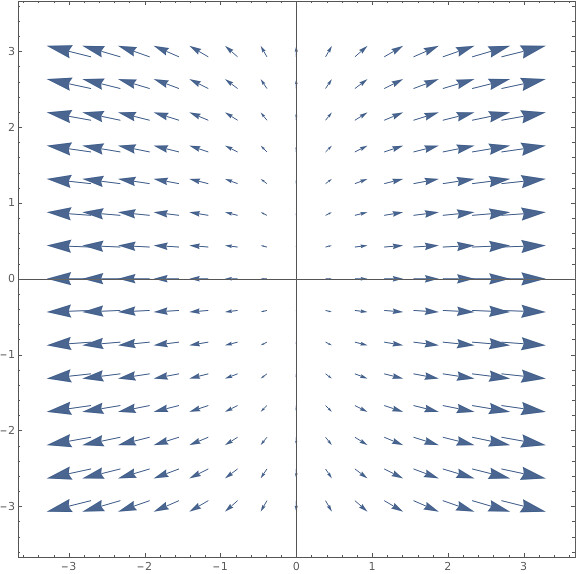 VectorPlot[{8x, 2y}, {x, -3, 3}, {y, -3, 3}]