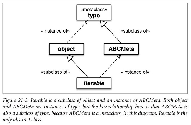Every class is an instance of type, directly or indirectly, but only metaclasses are also subclasses of type. That’s the most important relationship to understand metaclasses: a metaclass, such as ABCMeta, inherits from type the power to construct classes.