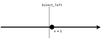 bisect.bisect_left(X, 1)就等价于 bisectXat the left boundary of (the neighborhood of)1- 那么 $x=1$ 这个点就属于右半边