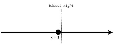 bisect.bisect_right(X, 1)就等价于 bisectXat the right boundary of (the neighborhood of)1- 那么 $x=1$ 这个点就属于左半边